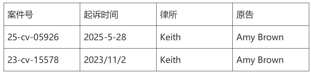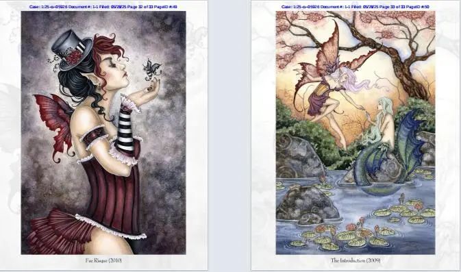 案件25-cv-05926(2025年5月28日立案)与23-cv-15578(2023年11月2日立案)均由Keith律所代理,原告同为美国精灵艺术家Amy Brown,且均涉及Amy Brown创作的17幅标志性精灵主题画作。