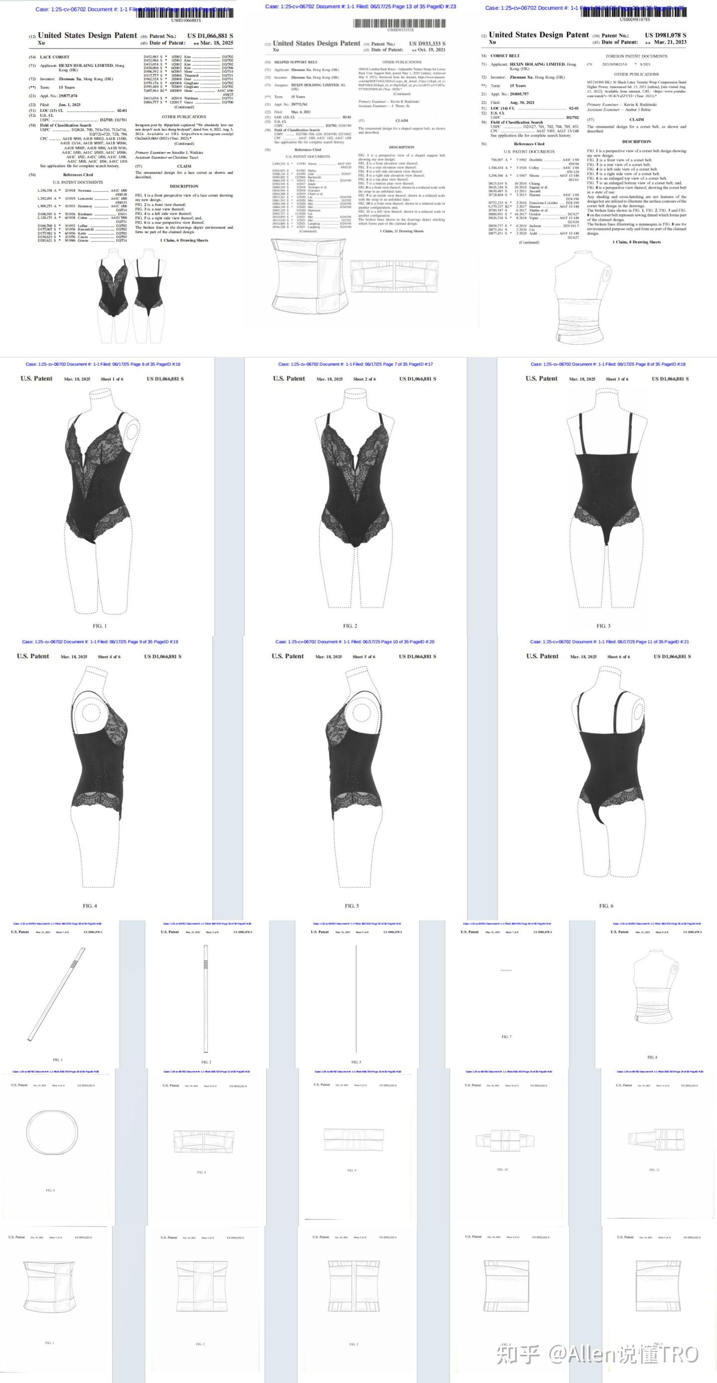 本案系Yk律所代理Hexin Holding Limited发起的跨境专利维权行动(案件编号:2025-cv-06702),与过往版权维权不同,此次案件聚焦三项核心专利。值得警惕的是,D1066881蕾丝塑身衣专利于2025年3月18日刚获美国专利认证,Hexin即发起维权行动,呈现“证书下发即启动诉讼”的强硬姿态。Allen团队监测发现,涉案产品已广泛渗透各大电商平台且销量可观,跨境卖家需立即启动自查程序,未获授权产品务必火速下架。