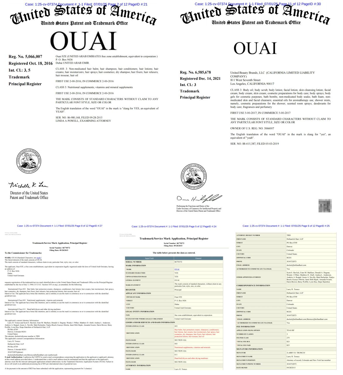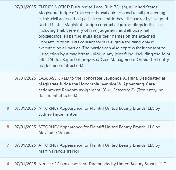 2025 年 7 月,TME 律所受联合利华旗下高端美妆事业部 United Beauty Brands, LLC 委托,针对其核心商标 "OUAI" 发起跨境维权行动,案件编号 2025-cv-07374。Allen 团队监测显示,本次维权涉及两枚关键商标:美国注册号 5066007(护发品类)与 6585678(护肤及香氛类),覆盖亚马逊、eBay 等主流跨境平台,目前已进入证据保全阶段,预计近期将申请 TRO 临时限制令。