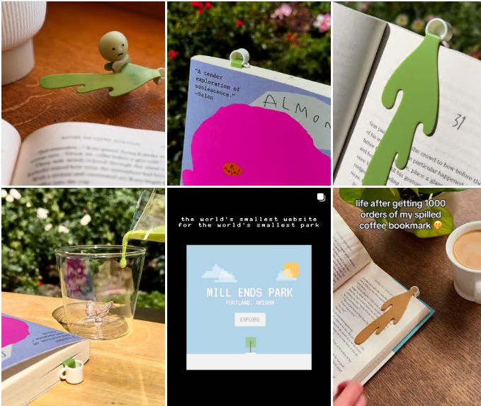 Ruan Bonney 作为 Cafe Bonney 品牌创始人,擅长将日常生活场景转化为艺术设计。其 2024 年 3 月推出的 “Spilled Coffee” 书签,因在抖音和 Instagram 引发病毒式传播而成为现象级产品,单月销量突破 5 万件。该设计以咖啡泼溅的瞬间为灵感,通过流体动力学原理还原真实咖啡渍形态,兼具趣味性与视觉冲击力。目前 Cafe Bonney 已拓展至家居、服饰等多个品类,形成独特的 “咖啡美学” 产品线。
