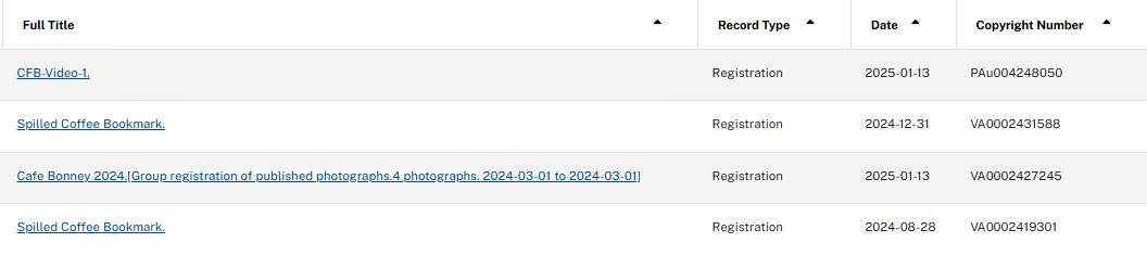 本案系 Saper Law Offices, LLC 于 2025 年 6 月初代理的匿名版权维权诉讼,案件编号 2025-cv-06140。经 Allen 团队深度核查,原告方为美国创意设计师 Ruan Bonney,其核心主张权利为美术作品版权 “Spilled Coffee”(洒出来的咖啡)。该作品已在美国版权局完成登记,保护范围涵盖具象化的咖啡泼溅形态设计,包括但不限于液态流动轨迹、咖啡渍扩散纹理及配套文字标识组合。目前案件仍处于诉讼初期,法院尚未批准原告申请的 TPO 临时限制令,涉案卖家账户暂未被冻结,但 Allen 团队监测到原告已启动证据保全程序,建议相关卖家立即采取行动。