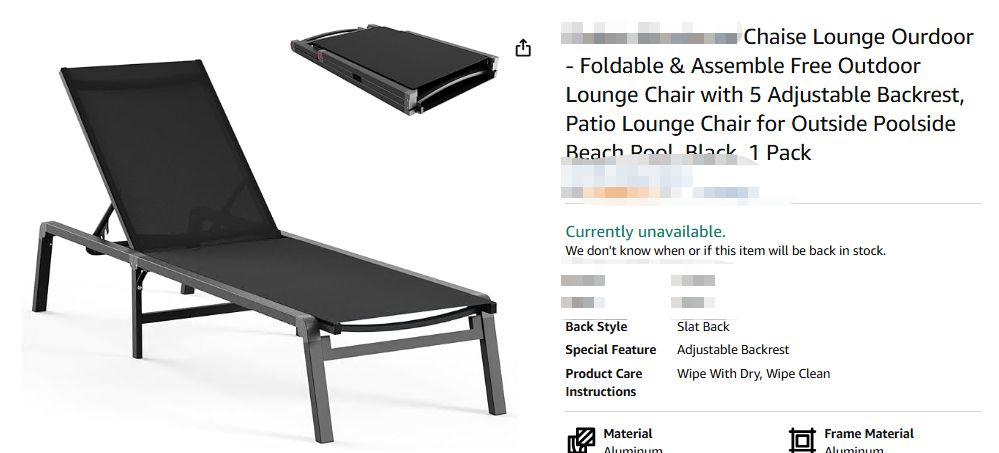 卖家排查指南:通过平台后台检索关键词 “chaise lounge”“foldable chair”,移除所有含 X 型支撑结构的在售商品,并删除历史链接避免关联风险。