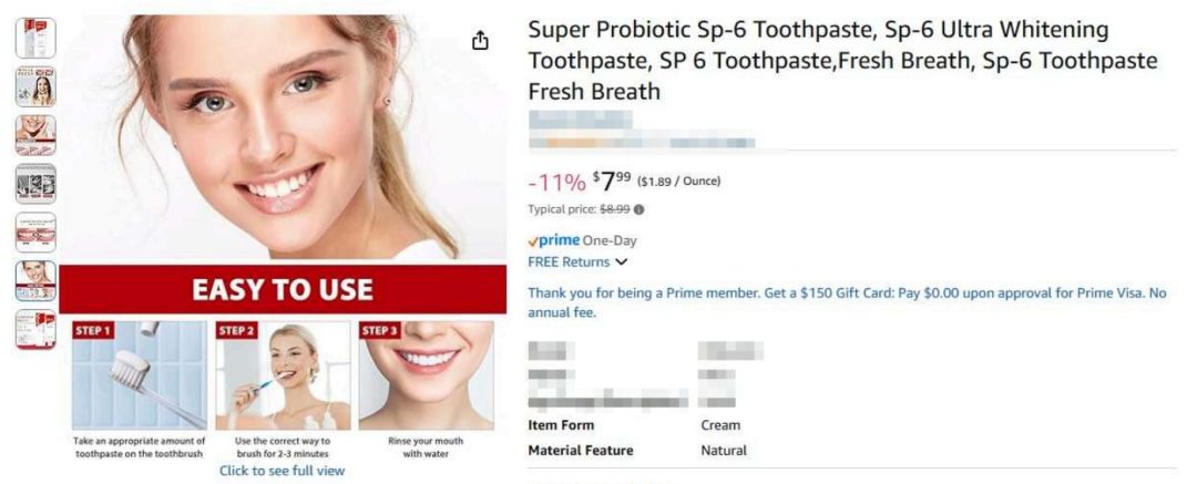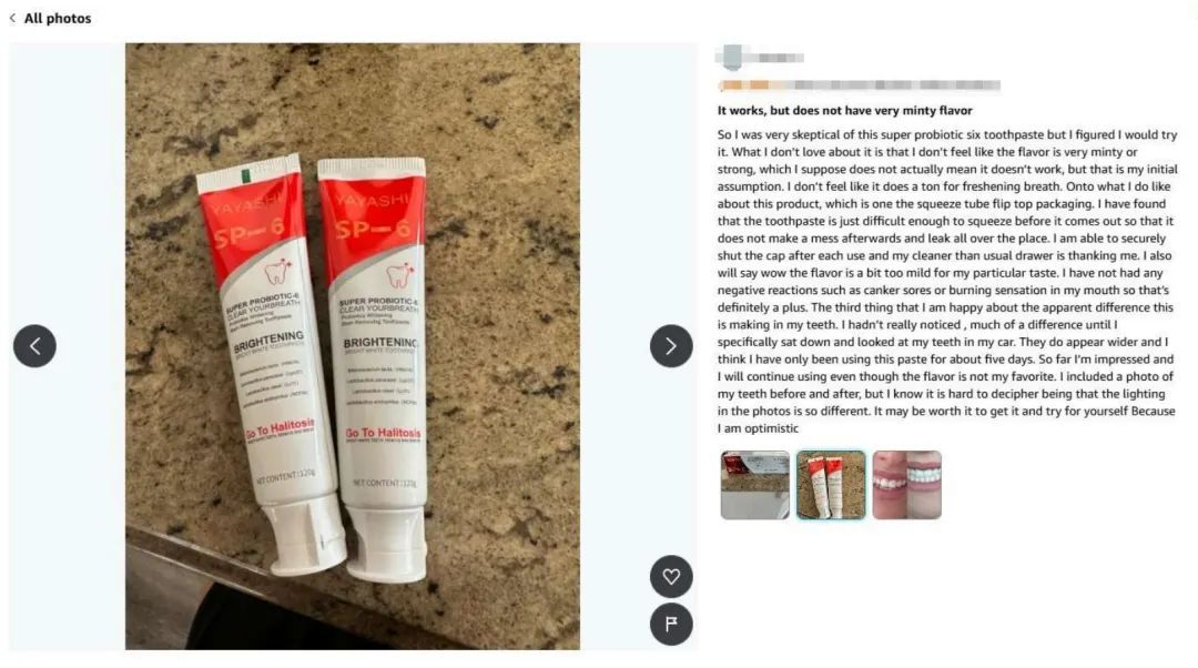 Lulu Cheng 作为中国个人卖家,深耕口腔护理领域多年,其创立的 YAYASHI 品牌以 “科学美白,温和护齿” 为核心定位。明星产品 YAYASHI SP-4 益生菌美白牙膏自 2024 年进入美国市场后,凭借 “物理 + 化学” 双重美白机制(含专利成分金刚粉)及益生菌平衡配方,迅速在亚马逊口腔护理品类进入 Top 50。产品主打 “无氟、无硅、无刺激” 卖点,适配敏感人群,2024 年美国市场销售额突破 200 万美元,积累超过 1.2 万条用户好评,复购率达 32%。