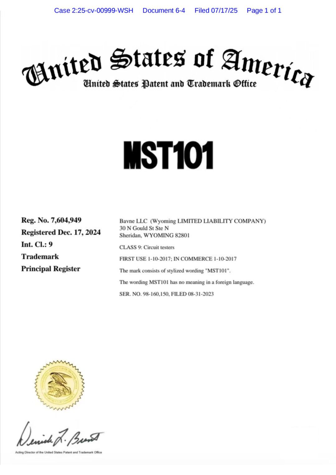 25-cv-00999 汽配 MST101商标 Alioth Law LLP Bavne LLC tro侵权 TRO冻结 TRO禁令 TRO和解 TRO侵权 美国TRO 跨境电商 亚马逊店冻结 亚马逊运营 Temu 亚马逊 阿里巴巴国际站 速卖通 敦煌网 Wish eBay 沃尔玛 Paypal账户