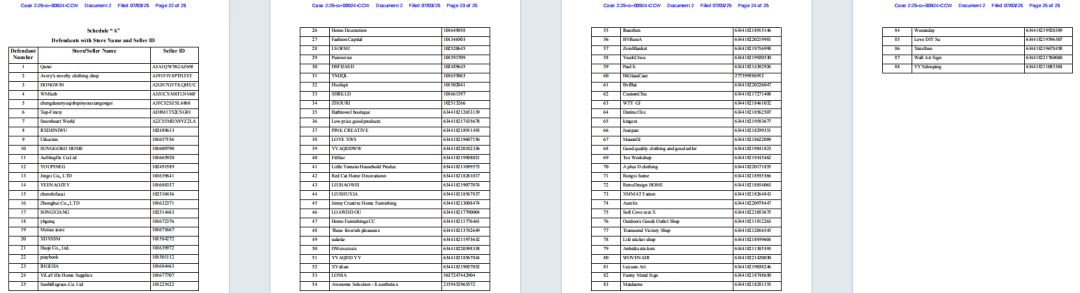 本案由Ference律所代表插画师Janet Broxon发起,涉及其2025年1月9日获美国版权局认证的三个作品。案件编号为2025-cv-00924,原告以版权侵权为由,向宾夕法尼亚州联邦法院申请临时禁令(TRO),目前已成功冻结88个涉案账户资金。值得注意的是,本案进展迅速,7月18日完成TRO递交后,法院已启动财产保全程序,卖家需在30日内联系律师处理,否则可能面临缺席判决及更高赔偿风险。