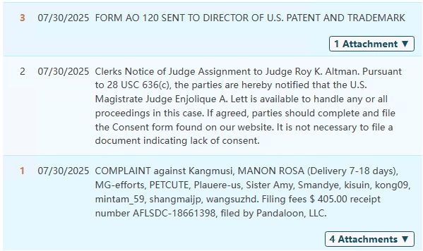 当前处于证据固定及立案审查期,原告尚未申请TRO 临时限制令,但预计1-2周内将推进法律程序。若卖家收到起诉状或取证邮件(如公证购买记录),需立即启动防御机制。Allen团队提醒:Pandaloon本次维权聚焦知识产权组合打击,后续可能基于剩余版权作品(已注册但未涉案部分)及其他专利延伸维权,跨境卖家务必高度警惕系统性风险。