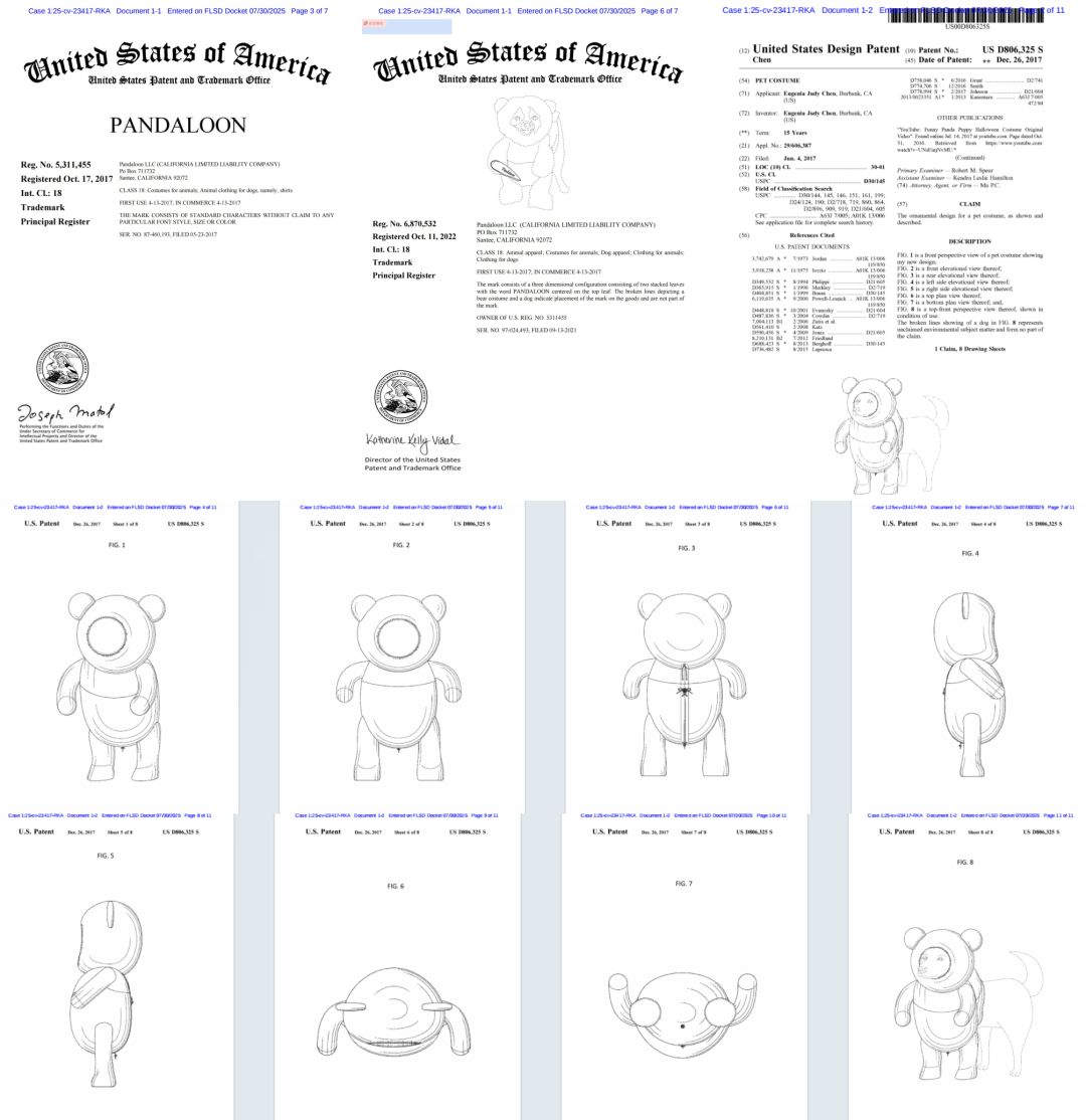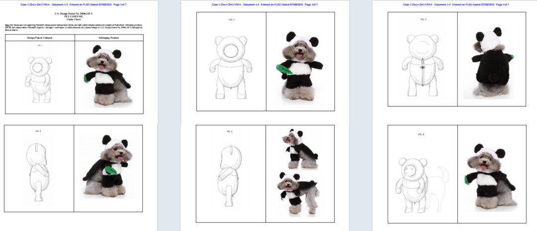 自查重点:核对产品是否使用“PANDALOON”文字或图形商标,避免使用相似标识。对比专利设计(USD806,325S),确保服装造型、结构无实质性相似。删除 Listing 中 “Pandaloon”“可爱动物宠物服”“萌宠设计” 等侵权暗示词及变体词(如 “Pandaloon-inspired”),避免因语言关联性被取证锁定。