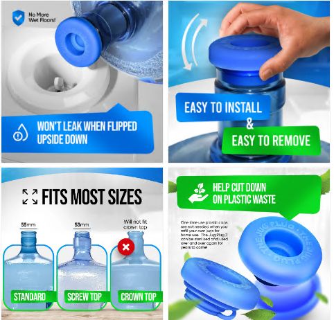 自查重点:获取USPTO官网公布的三大专利证书图样,比对在售商品是否存在硅胶塞凸起+环形密封槽+防滑底面的组合设计;是否宣传“倒置不漏水”“快拆1秒”等核心功能特性(即使结构微改仍可能侵权);数字素材是否盗用原告官网水桶盖使用场景图。删除Listing中“JugPlug”“快拆水桶盖”“专利兼容”等侵权词及变体(如“类似JugPlug设计”),避免语言关联性触发取证锁定。