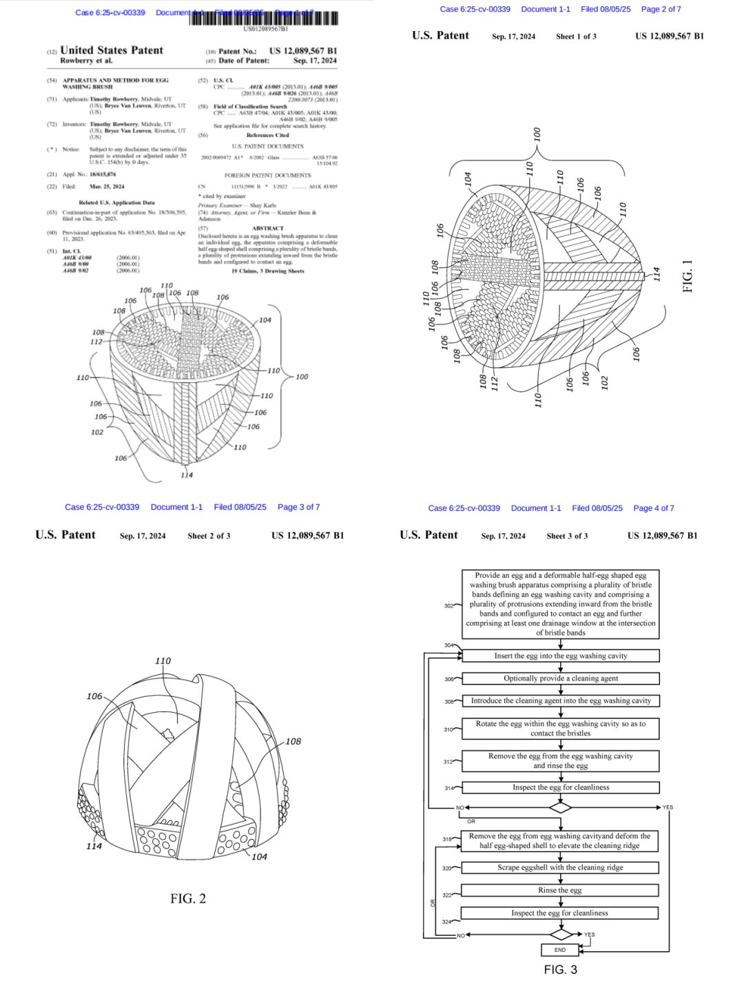 本案是由Avek律所代理GoodEgg Stuff LLC在美国德克萨斯州东区联邦地区法院发起的专利维权诉讼,案件编号为2025-cv-00339。涉案核心是一款鸡蛋清洁刷的发明专利(专利号:12089567,于 2024年9月取得美国专利证书)。