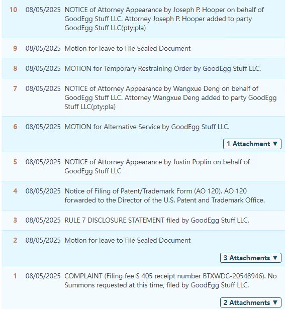专利维权 TRO 25-cv-00339 GoodEgg 鸡蛋刷发明专利 Avek律所 专利号:12089567 GoodEgg Stuff tro侵权 TRO冻结 TRO禁令 TRO和解 TRO侵权 美国TRO 跨境电商 亚马逊店冻结 亚马逊运营 Temu 亚马逊 阿里巴巴国际站 速卖通 敦煌网 Wish eBay 沃尔玛 Paypal账户