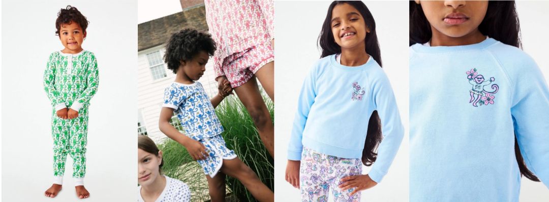 Roller Rabbit LLC由设计师Roberta Freymann于2005年创立,以手绘图案与高品质面料结合为特色,逐步扩展至全年龄段消费者。品牌设计灵感源自旅行与多元文化,主打明亮色彩与丛林、动物主题,传递家庭温馨与轻松生活理念。其可持续举措包括采用环保面料,并通过公益合作支持儿童教育,塑造了兼具艺术性与社会责任感的品牌形象。