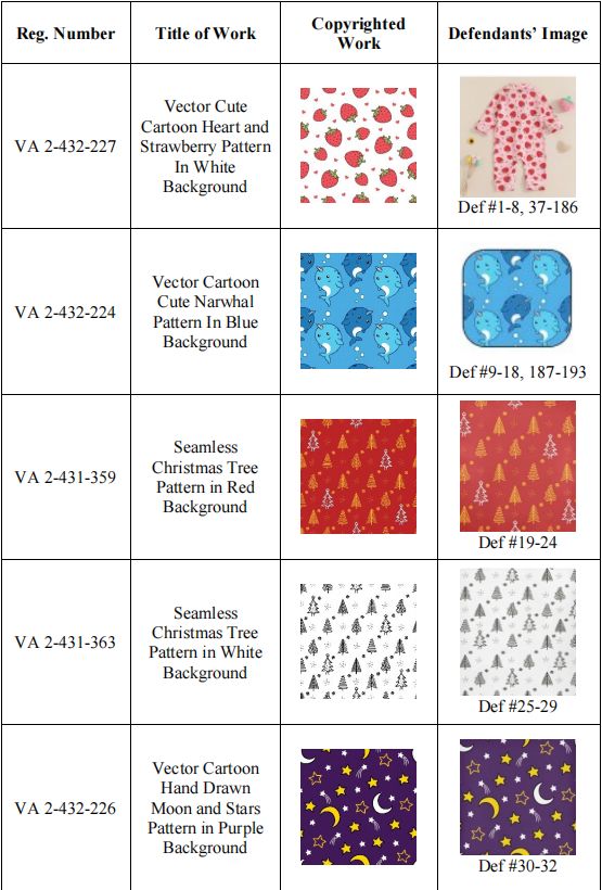 维权商标与专利解读:本轮维权涉及7个美国版权登记号:VA 2-432-227、VA 2-432-224、VA 2-431-359、VA 2-431-363、VA 2-432-226、VA 2-431-360、VA 2-432-225。作品类型为 Ian Lusung 创作的复古风格矢量插画,融合上世纪八九十年代动画与现代视觉设计,特点为清新可爱、色彩柔和、布局治愈。核心图案包括草莓、爱心、几何元素、卡通角色等版权图形(参考首轮草莓图案维权 VA 2-432-227 作品风格)。重点涉及使用上述插画的文创产品(笔记本、手机壳、海报)、家居装饰(抱枕、墙贴、窗帘)、纺织品(童装、床上用品、毛巾)、儿童绘本及数字绘画商品。卖家需警惕未经授权的图案直接复制或高度相似修改版本的使用。