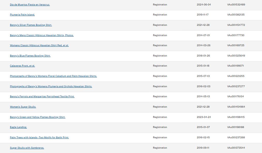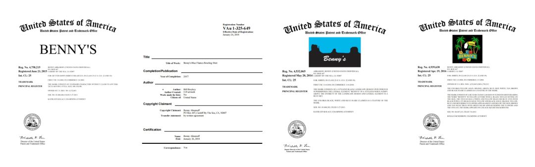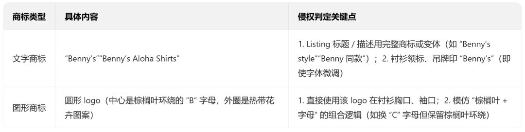 Benny’sAlohaShirtsLLC在美国的知识产权布局很扎实,咱们卖家要重点盯紧两类权利: