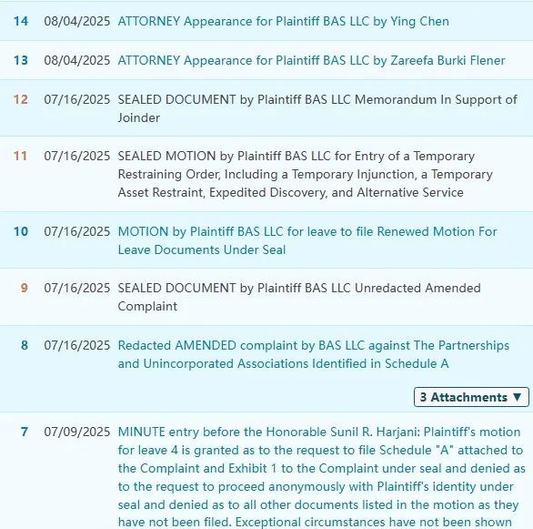 6月下旬刚立案就出了波折:7月9日法院直接驳回了原告的 “匿名诉讼” 请求,原告补充身份信息后,8月22日又被部分驳回,Allen团队从Flener律所内部渠道获悉,原告已启动 “补充取证”,预计9月中旬会追加起诉30-50家店铺,本次未被起诉的卖家切勿放松警惕。