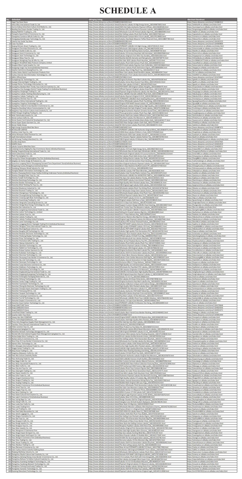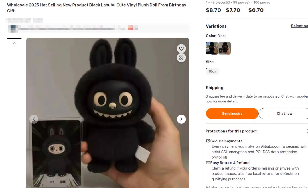 6月下旬立案,7月中旬TRO获批,EPS律所通过“批量购买取证”锁定阿里国际站、速卖通上标注“LABUBU同款”“暗黑精灵玩偶”的链接,累计抓取超500条侵权Listing;法院认定LABUBU商标及版权的“全球影响力”,裁定对189家店铺实施紧急冻结;Allen团队从EPS内部渠道获悉,原告已启动“补充取证”,针对亚马逊、Etsy上“LABUBU元素服饰”(如带锯齿牙图案的T恤)新增购买记录,预计9月上旬追加起诉200-300家店铺。
