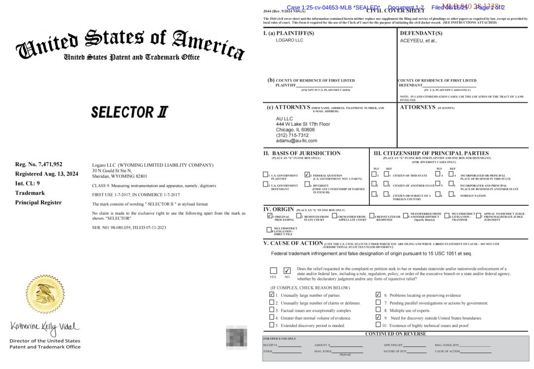 很多卖家可能对"SELECTORII"商标的保护边界不清晰,Allen团队结合USPTO商标局备案信息和产品实物分析,整理出关键025-cv-04653号案的核心维权范围: