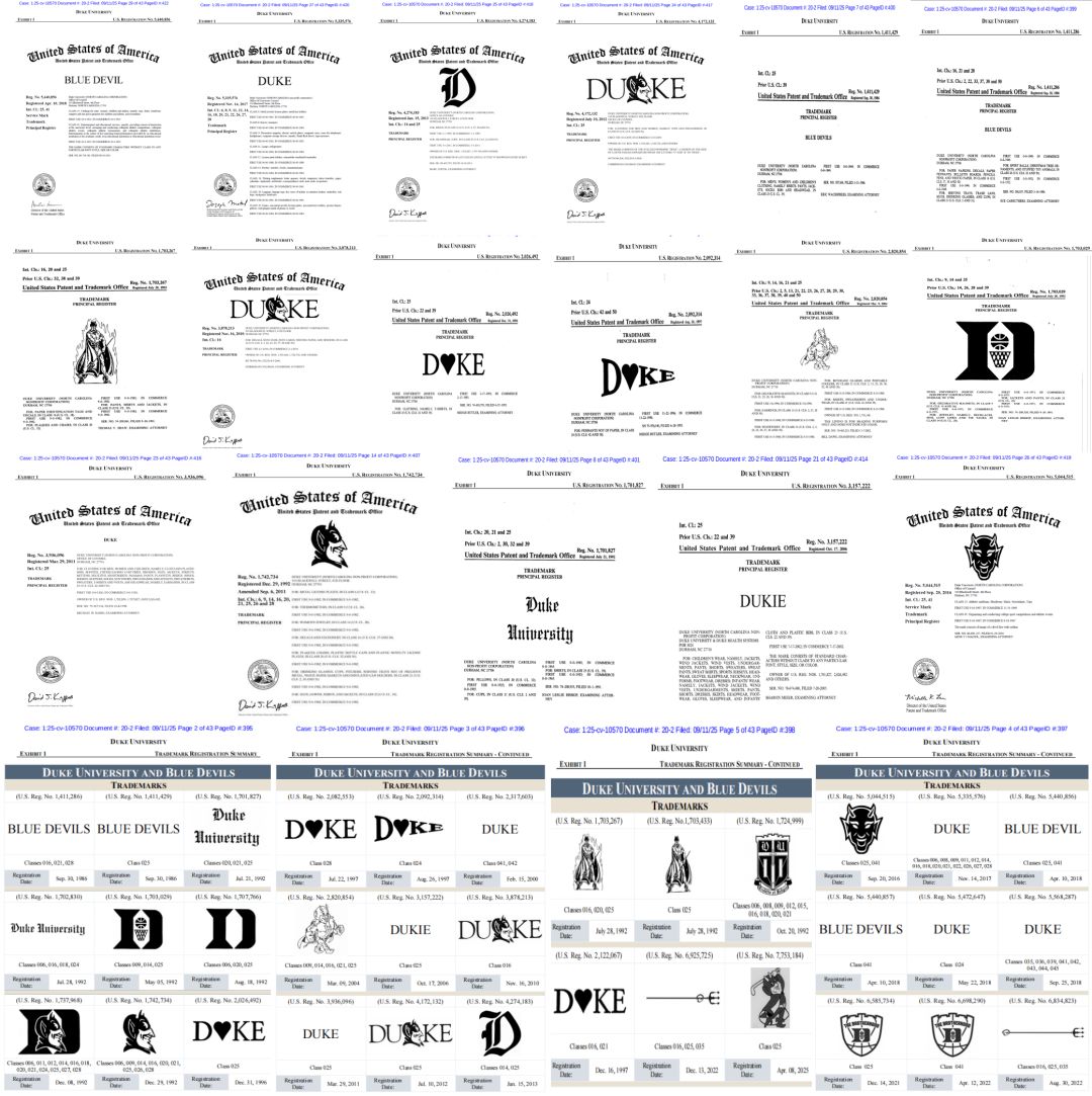 美国顶尖名校杜克大学(Duke University)的商标维权案有了新进展!原本由Sullivan律所在9月初发起的匿名诉讼(案件编号:2025-cv-10570),因法院认定“无特殊情况不得隐瞒原告身份”被驳回,案件细节于9月中旬正式公开。这意味着杜克大学的维权行动从“暗战”转入“明查”,之前被盯上的81家跨境店铺(以亚马逊服装类、Etsy饰品店为主)虽暂未面临TRO冻结,但法院已要求原告将被告人数缩减至40人并说明合并诉讼理由,下一步很可能就是针对性申请临时限制令。