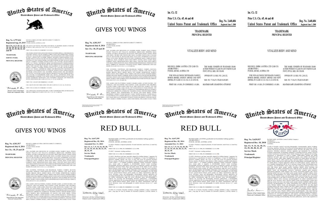 全球能量饮料巨头红牛(Red Bull GmbH)的商标维权大案已正式立案!Scale LLP律所在德克萨斯州东区地方法院发起的2025-cv-01004案件,目前已锁定454家涉嫌侵权的店铺,覆盖亚马逊、eBay等主流平台。Allen团队从法院最新文件获悉,本次维权并非简单的“品牌打假”,而是针对核心商标的“精准围剿”,涉及9个高价值商标(6个图形+3个文字),尤其是标志性的“双牛对峙”图形和“Red Bull”文字组合,在运动水杯、电竞外设等品类中侵权现象严重。