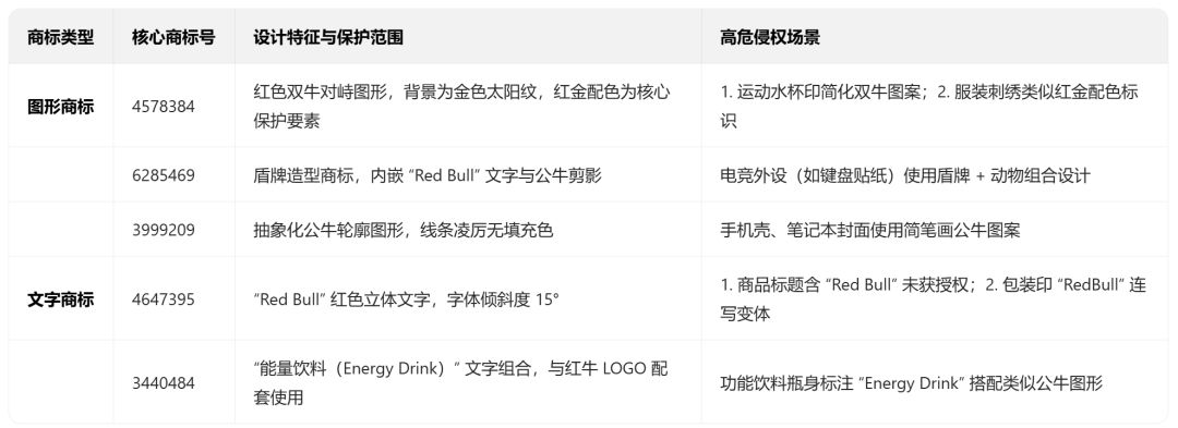 卖家对红牛商标的保护范围存在认知盲区,Allen团队结合USPTO商标数据库和品牌官网资料,梳理出本次维权的核心标的特征: