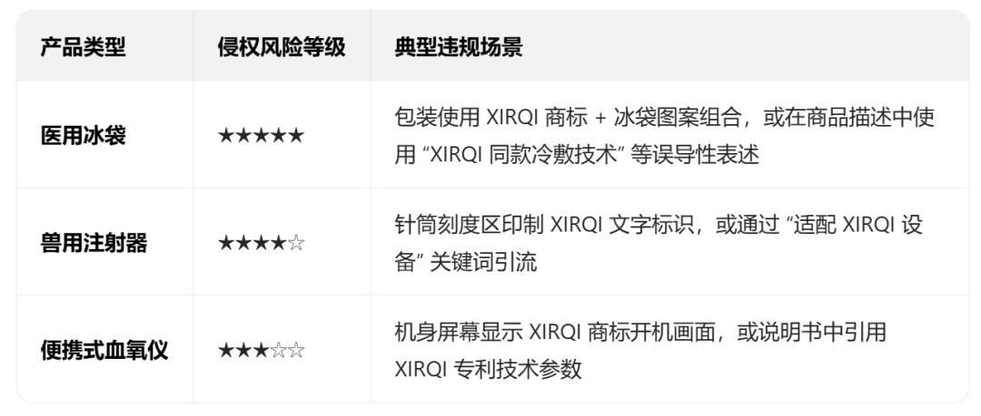 跨类目关联风险:虽然XIRQI注册在第10类,但原告在起诉状中主张"医疗用品与健康周边存在关联销售",这意味着销售印有该标识的保健器材收纳袋等周边商品也可能被认定为混淆性使用。