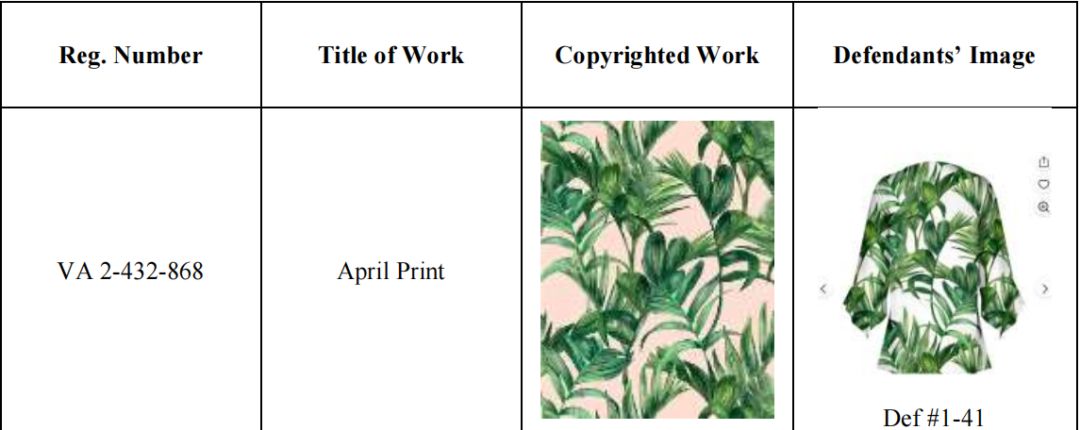 8月底,Keith和Ference联合律所立案取证,先全网抓取“水彩棕榈叶”等关键词商品,购30多件疑似侵权品对比,发现80%商品与版权VA 2-432-868的叶片结构等完全重合。9月初获批TRO,法院认定侵权商品易致混淆,且仿品低价严重影响正品销量,遂冻结41家店铺资金,单店5000 - 3万美元不等。9月下旬申PI初步禁令,律所正补充侵权店铺销售数据,PI获批后,被冻店铺资金不能动,还得停售类似商品至案件结束(至少3 - 6个月)。