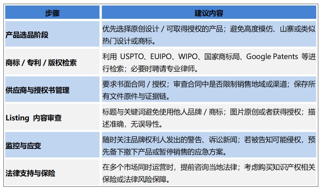 定期审查已有Listing:市场上法律、商标状况可能变化(有人注册新商标),定期重新检索。接到品牌权利人通知或收到投诉要及时响应并处理。