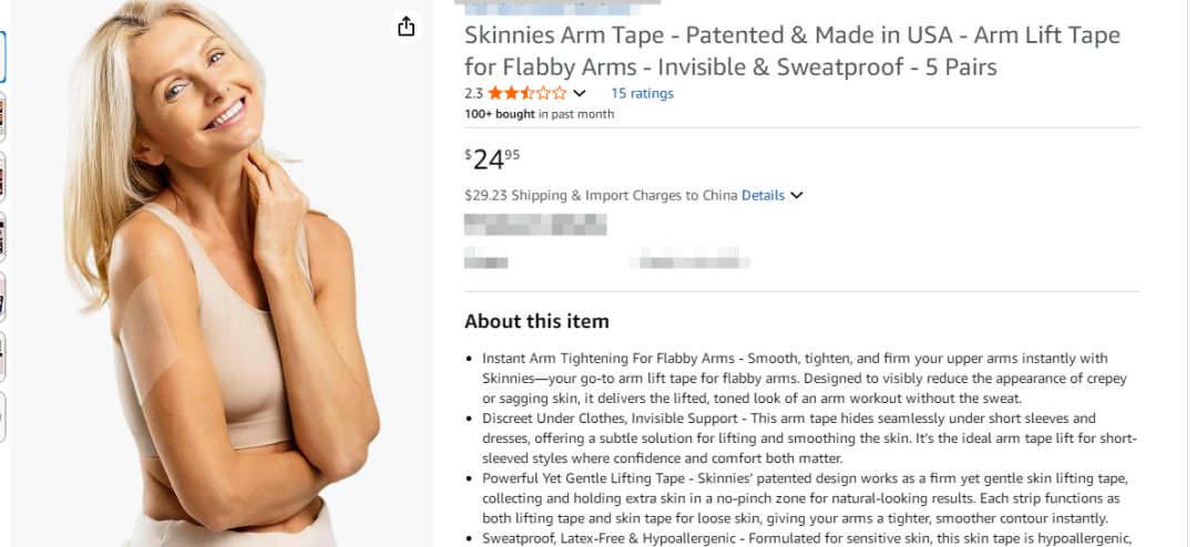 自查重点:打开店铺后台 “在售商品” 列表,使用 “Skinnies”“Instant Lift”“thigh Lift” 等核心词检索,特别注意 “Instant Lift Tape”“Skinnies Shapewear” 等组合关键词的隐性使用;检查产品是否采用 “透明粘性贴片+即时提拉” 设计,若使用类似胶层配方或佩戴方式,需通过世界知识产权组织(WIPO)数据库比对专利技术点;查看产品标题、五点描述、搜索关键词中是否包含涉案商标,即使仅用于 “功能描述” 也可能构成侵权。