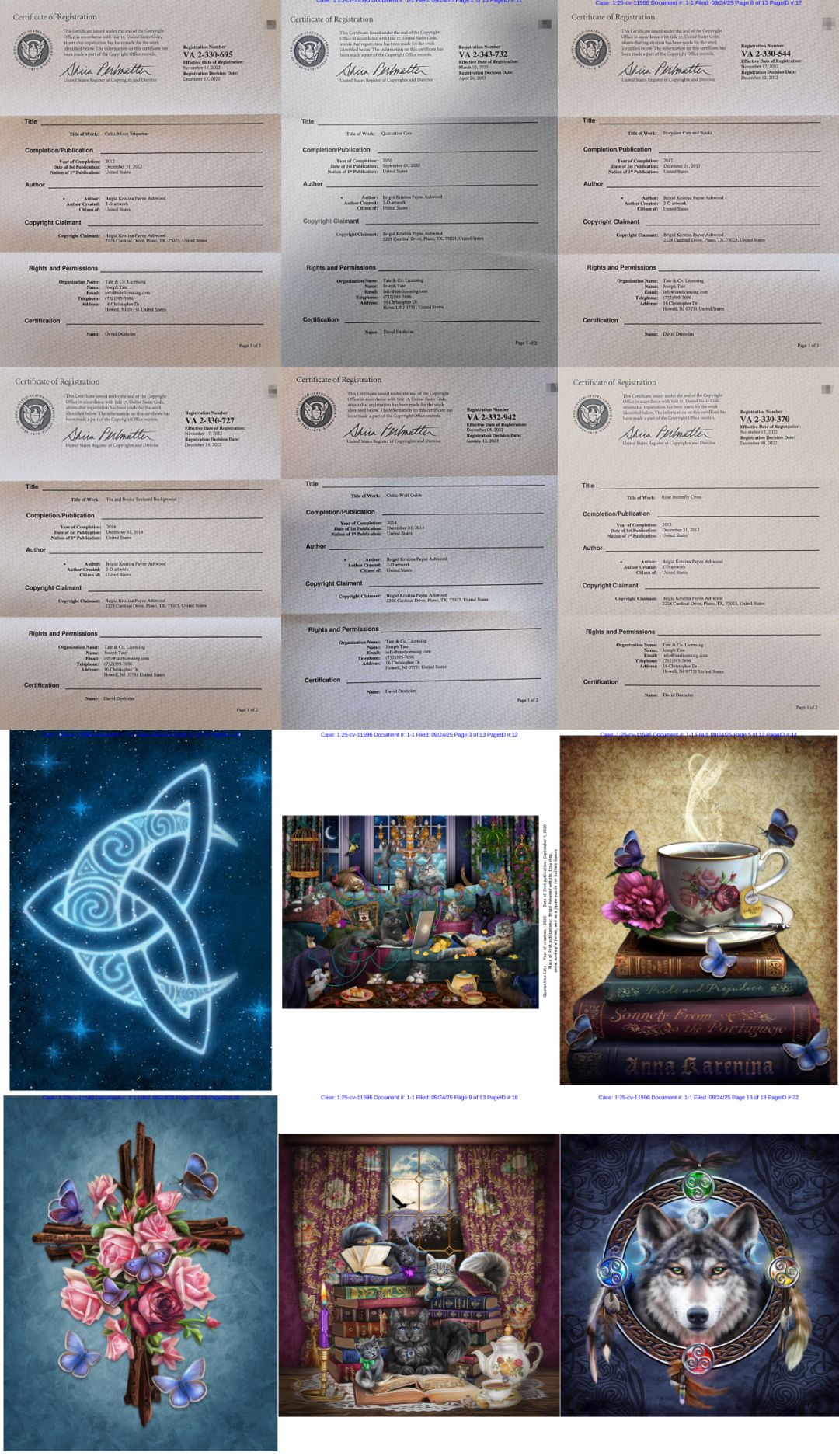 曾在2023-2024年靠维权冻结近400家店铺的艺术家Brigid Ashwood,今年又通过Keith律所发起新一轮诉讼(案件编号:2025-cv-11596)!Allen团队从Keith律所内部渠道获悉,本次维权瞄准6个核心版权作品(多为神话生物、童话场景主题),目前案件处于前期取证阶段,律所已在亚马逊、Etsy、Temu抓取近50条疑似侵权Listing,其中拼图类目占比超60%(尤其是1000片复古神话主题拼图),后续大概率会在10月中旬申请TRO临时限制令。