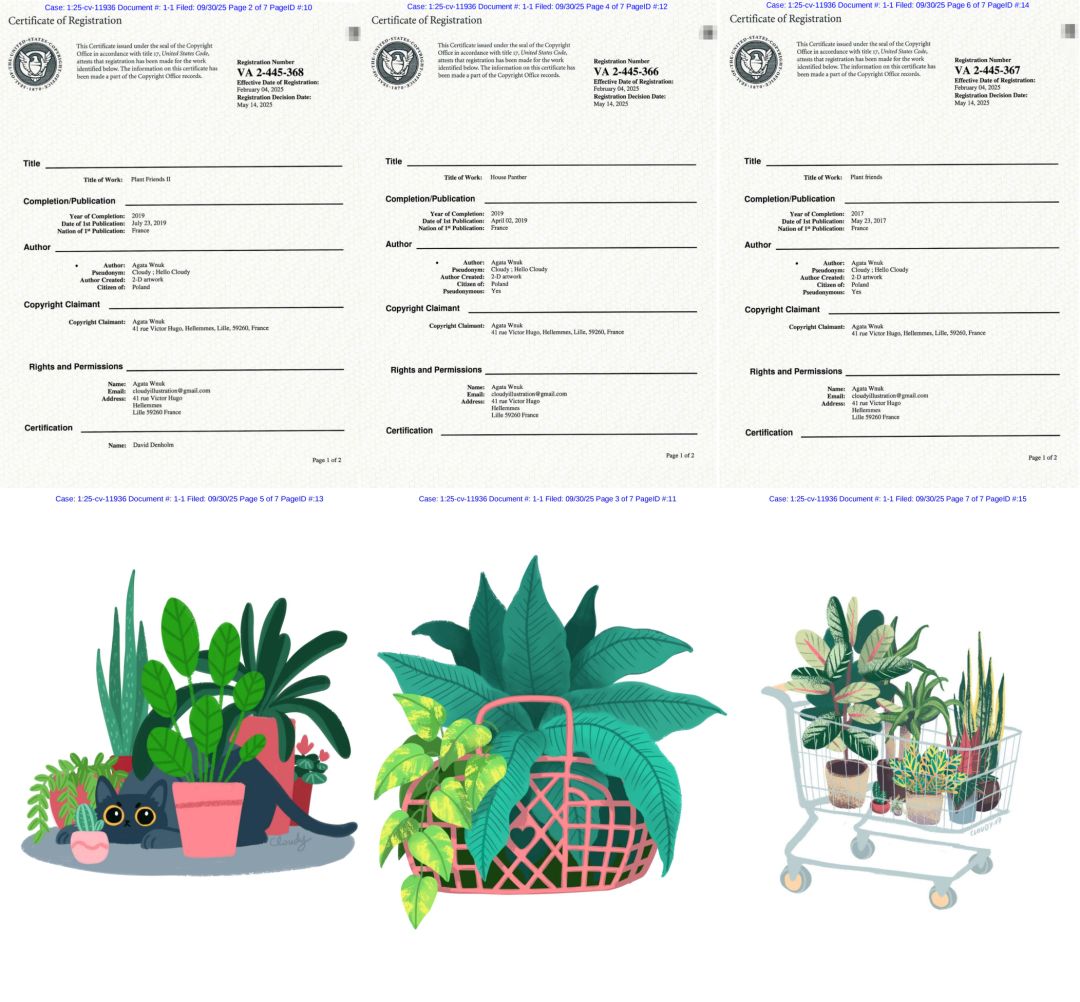 版权维权 TRO 25-cv-11936 Keith律所 Agata Wnuk Hello Cloudy VA 2-445-368 VA 2-445-366 VA 2-445-367 tro侵权 TRO冻结 TRO禁令 TRO和解 TRO侵权 美国TRO 跨境电商 亚马逊店冻结 亚马逊运营 Temu 亚马逊 阿里巴巴国际站 速卖通 敦煌网 Wish eBay 沃尔玛 Paypal账户,Allen说懂TRO