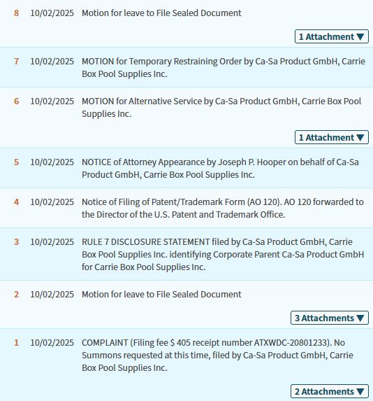 专利维权 25-cv-01606 Carrie Box 泳池收纳篮 AVEK IP律所 德国家居企业 Ca-Sa Product GmbH Carrie Box Pool SuppliesInc tro侵权 TRO冻结 TRO禁令 TRO和解 TRO侵权 美国TRO 跨境电商 亚马逊店冻结 亚马逊运营 Temu 亚马逊 阿里巴巴国际站 速卖通 敦煌网 Wish eBay 沃尔玛 Paypal账户,Allen说懂TRO