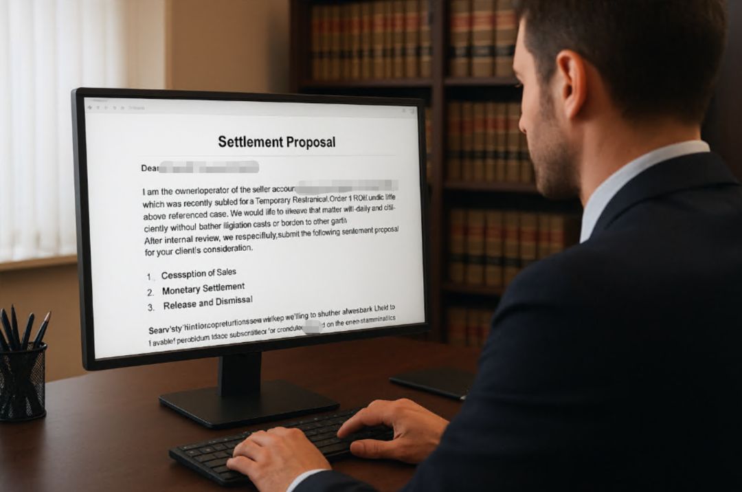 对于跨境卖家来说,美国TRO看似可怕,但实质是一个“谈判程序”。能否顺利解冻,关键在于是否用正确的方式进入对话。而那封发给原告律师的英文初始和解意向书,正是这场谈判的“敲门砖”,既是诚意的体现,又是法律的防护伞,更是卖家重新掌控局面的起点。最后要说的是一封信,打开解冻与和解的大门。它不只是邮件,更是一份专业态度的体现。写对了,就有谈判空间;写错了,可能错过最佳时机。