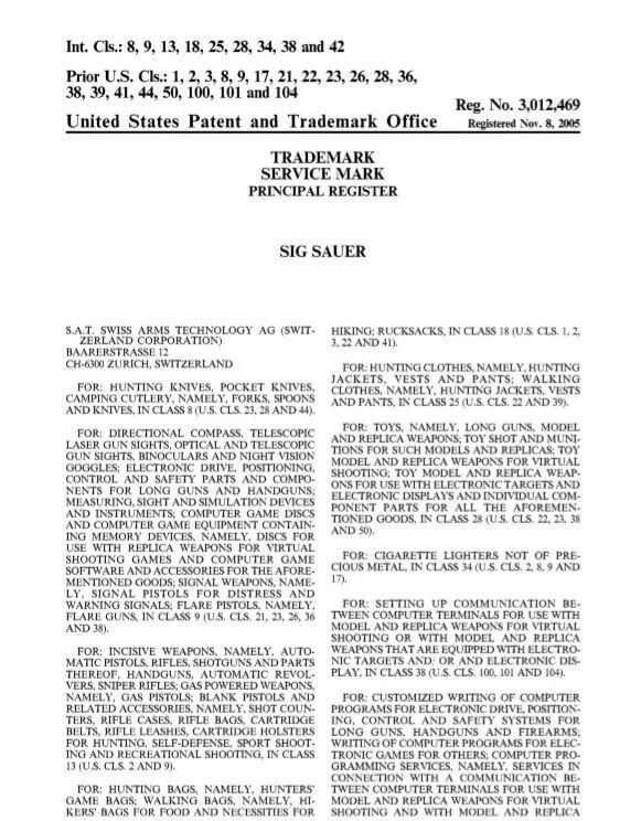 Sig Sauer Inc.是美国知名枪械与战术装备制造商,最早可追溯至瑞士工业背景,后与德国Sauer&Sohn整合发展形成现今品牌。公司产品线非常多元,不仅生产手枪、步枪、霰弹枪、气枪、弹药,还扩展至瞄准镜、光电仪器、战术装备、户外服饰、刀具及其他配件。其商标策略与品牌保护意识较强,其官网明确指出其所有商标、标识为受保护资产,禁止未经授权使用。对于跨境卖家而言,只要商品或广告稍有品牌标识成分,就可能被纳入目标。