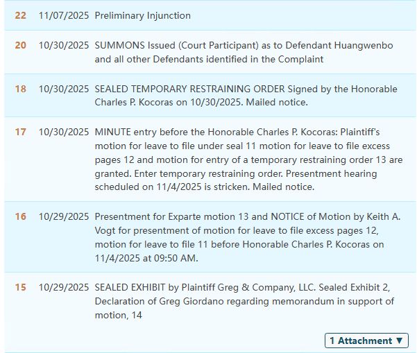 本案由keith律所代理Greg & Company, LLC发起,案件编号为2025-cv-13174。作为跨境维权领域的常客,Greg & Company, LLC自2024年5月首次维权以来,在短短一年半的时间内,已通过TRO(临时限制令)成功冻结超过1200个涉案店铺,显示出其强大的维权力度和决心。本次新案件中,Greg & Company, LLC再次发力,已成功TRO冻结85个涉案店铺,且这一数字仍在持续上升。卖家们需高度警惕,避免卷入这场版权风波。