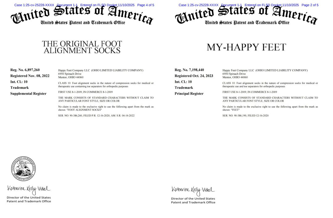 商标维权 25-cv-25228 足部矫正袜 My-Happy Feet BSF律所 Happy Feet Company Boies Schiller Flexner Eva Nemcik tro侵权 TRO冻结 TRO禁令 TRO和解 TRO侵权 美国TRO 跨境电商 亚马逊店冻结 亚马逊运营 Temu 亚马逊 阿里巴巴国际站 速卖通 敦煌网 Wish eBay 沃尔玛 Paypal账户 Allen说懂TRO