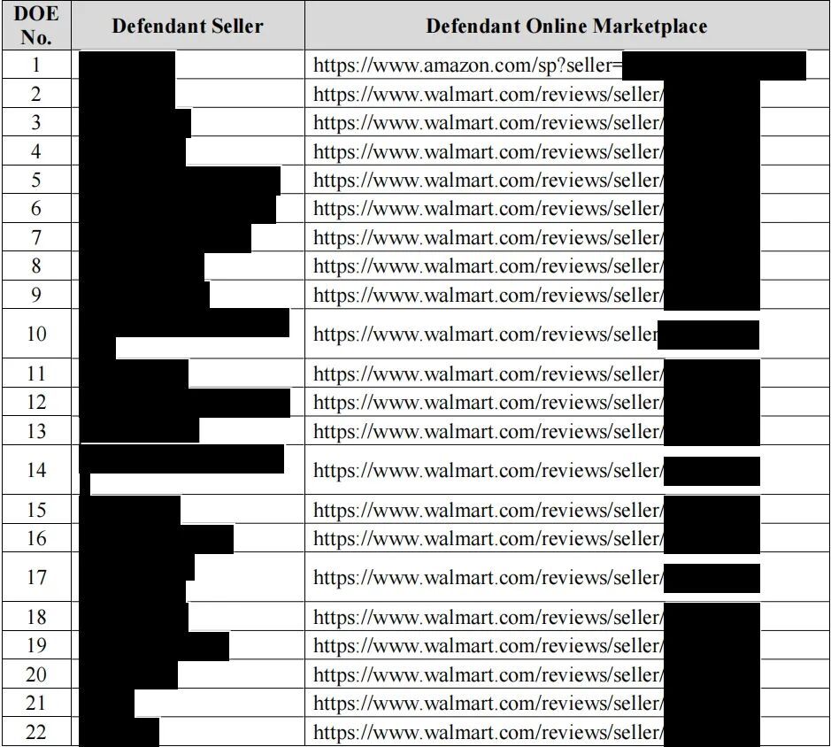 这起由BSF律所(以 “和解金要价高、推进速度快” 著称)代理美国足部护理品牌Happy Feet Company LLC发起的商标维权案(案件编号2025-cv-25228,受理法院为佛罗里达州南区地方法院 —— 该法院对消费类产品侵权案件判决执行力度极强),目前已锁定 22 家涉案店铺,其中 21 家集中在沃尔玛平台,仅剩1家为亚马逊第三方店,成为近期 “平台精准打击” 的典型案例。