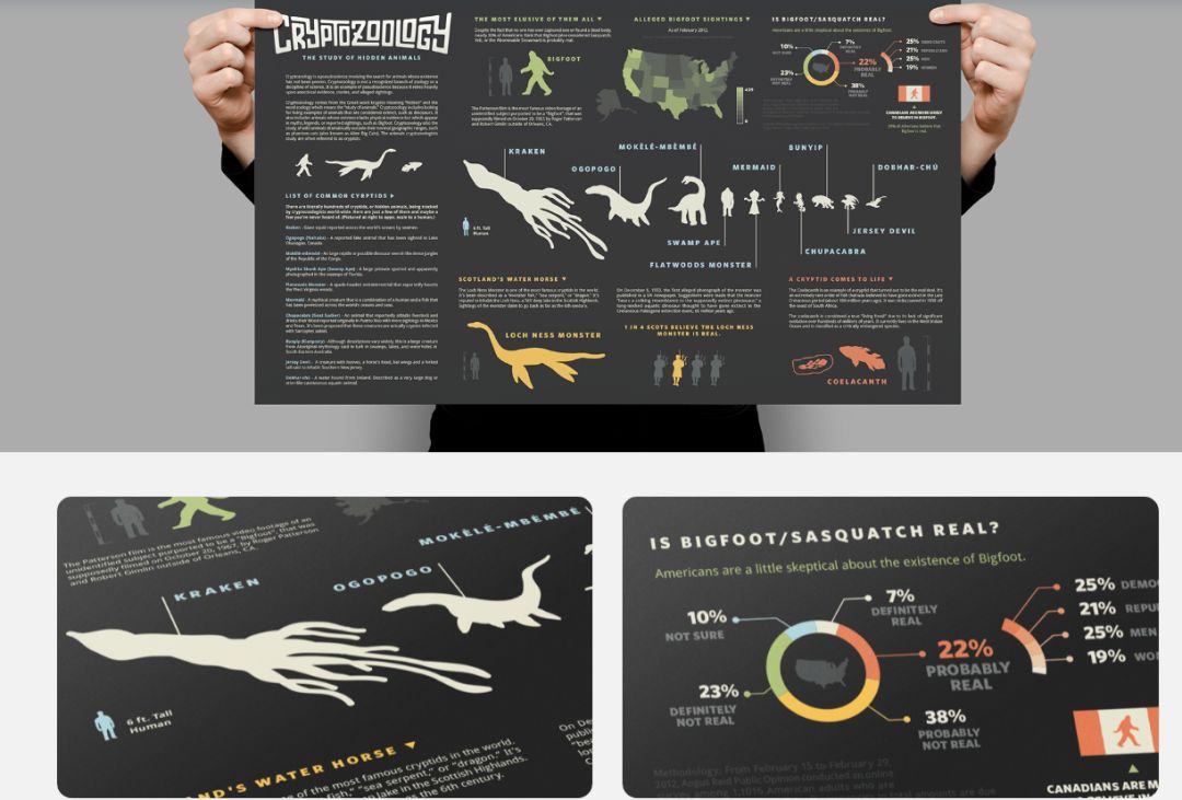 本案是版权侵权诉讼。原告对其创作的海报拥有美国版权登记 (VA 2-456-079)。海报采用简洁剪影插图,展示各种神秘动物(如传说中的动物形态),每种生物采用不同颜色轮廓,视觉上既直观又具神秘感。该设计具有很高的艺术性与可识别性。未经授权拼接、再创作、部分摘取该海报内容并用于商业商品 (如印花、贴纸、T恤、挂画等) 的行为,构成潜在侵权。