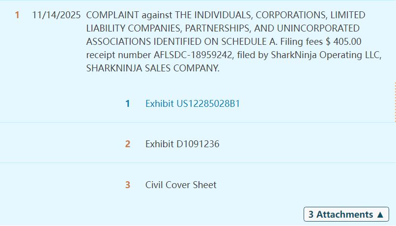 这起由Coffey Burlington, P.L.律所代理全球家电巨头SharkNinja Operating LLC发起的专利维权案,案件编号 2025-cv-25323,受理法院为佛罗里达南区法院,家电类侵权案高频审理地,对技术专利保护力度极强。根据Allen团队跟进的行业动态,SharkNinja手握4500+项全球专利,维权向来“精准且强硬”,本次针对两项核心专利(12285028发明专利、D1091236外观专利)。Coffey Burlington, P.L. 律所擅长家电类专利诉讼,过往同类案件和解金普遍在5000-3万美元区间,且要求侵权产品永久下架,已有4家仿品卖家提前下架仍被标记风险。需要两项专利的完整技术文件、外观设计线稿图,直接联系Allen团队就能获取。