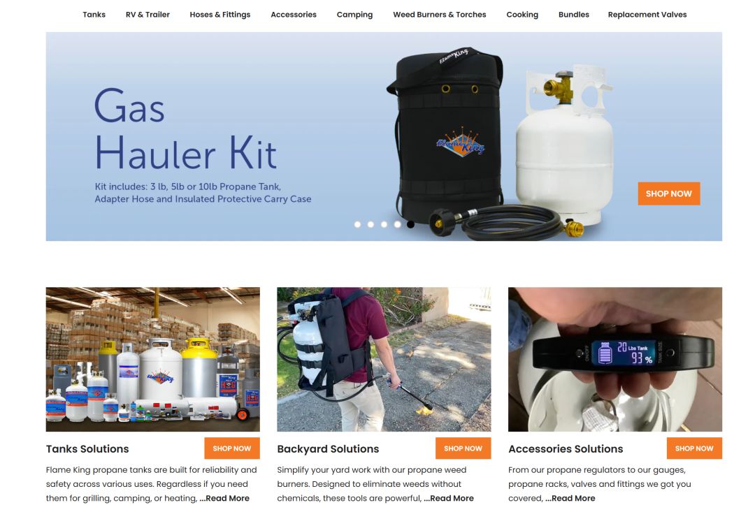 原告诉求基于 商标侵权,其核心商标为 “Flame King” 品牌名。涉案卖家可能在产品标题、关键词、包装或 Listing 中使用该商标词,构成侵权或商标滥用。Flame King的主营产品为 液化石油气 (LPG) 气瓶及相关配件。其产品线包括便携式丙烷钢瓶 (1磅–420磅)、气瓶配件、气体配送系统等。涉案卖家若销售类似类别 (如气瓶、燃气配件) 或在其Listing中使用 “Flame King” 商标词,都可能被认定为侵权。