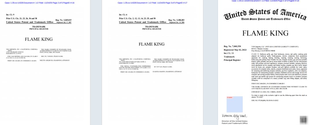 商标维权 2025-cv-14328 Flame King Keener律所 YSN Imports LLC dba Flame King Flame King商标 Keener & Associates tro侵权 TRO冻结 TRO禁令 TRO和解 TRO侵权 美国TRO 跨境电商 亚马逊店冻结 亚马逊运营 Temu 亚马逊 阿里巴巴国际站 速卖通 敦煌网 Wish eBay 沃尔玛 Paypal账户 Allen说懂TRO