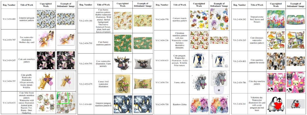 本次维权主要围绕Faenkova Elena Valentinovna的20个版权作品展开,不涉及商标和专利方面的维权。涉案的20个版权号分别为:VA 2-454-242、VA 2-454-245、VA 2-454-803、VA 2-454-786、VA 2-454-241、VA 2-454-146、VA 2-454-799、VA 2-454-795、VA 2-453-679、VA 2-454-681、VA 2-454-680、VA 2-454-747、VA 2-454-247、VA 2-454-797、VA 2-454-633、VA 2-454-778、VA 2-454-236、VA 2-454-635、VA 2-454-754和VA 2-454-758。Faenkova Elena Valentinovna的作品维权覆盖范围广泛,涉及多个热门产品类别。在节日用品领域,其作品常被用于贺卡、礼品盒的设计,为节日增添温馨氛围;在玩具市场,拼图产品也大量采用她的插画图案,深受儿童喜爱;服饰方面,T恤图案设计也频繁出现她的作品,展现出独特的艺术风格。此外,室内装饰画也是其作品的重要应用方向,被众多消费者选购用于家居装饰。值得注意的是,Faenkova Elena Valentinovna在美国共注册有59个版权作品,除了本案涉及的20个外,还有29个版权作品暂未参与此次维权。跨境卖家除了要排查本案涉及的20个版权作品相关图片外,还需密切关注其官网展示的其他热门图案,避免因使用未维权作品而精准踩雷。